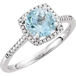 7mm Lab-Grown or Natural Birthstone, .01 CTW Diamond, Sterling Silver Ring