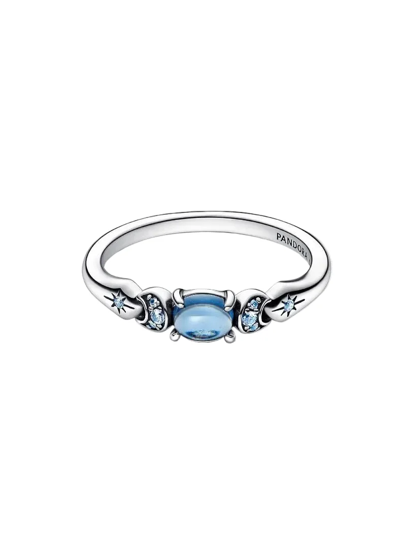 Stack your favorite stories with Disney x Pandora. Celebrate the 30th anniversary of Disney's classic, Aladdin, with pieces inspired by the brave and self-assured Princess Jasmine. Crafted from sterling silver, this stackable ring features an oval moonlight blue man-made crystal at its center, surrounded with icy blue man-made crystals, referencing Princess Jasmine's characteristic teal blue color. Make your own wishes come true and layer this sterling silver ring into your everyday favorites to let your bravery shine for all to see - or gift it to an Aladdin fan and take their jewelry into a new world.