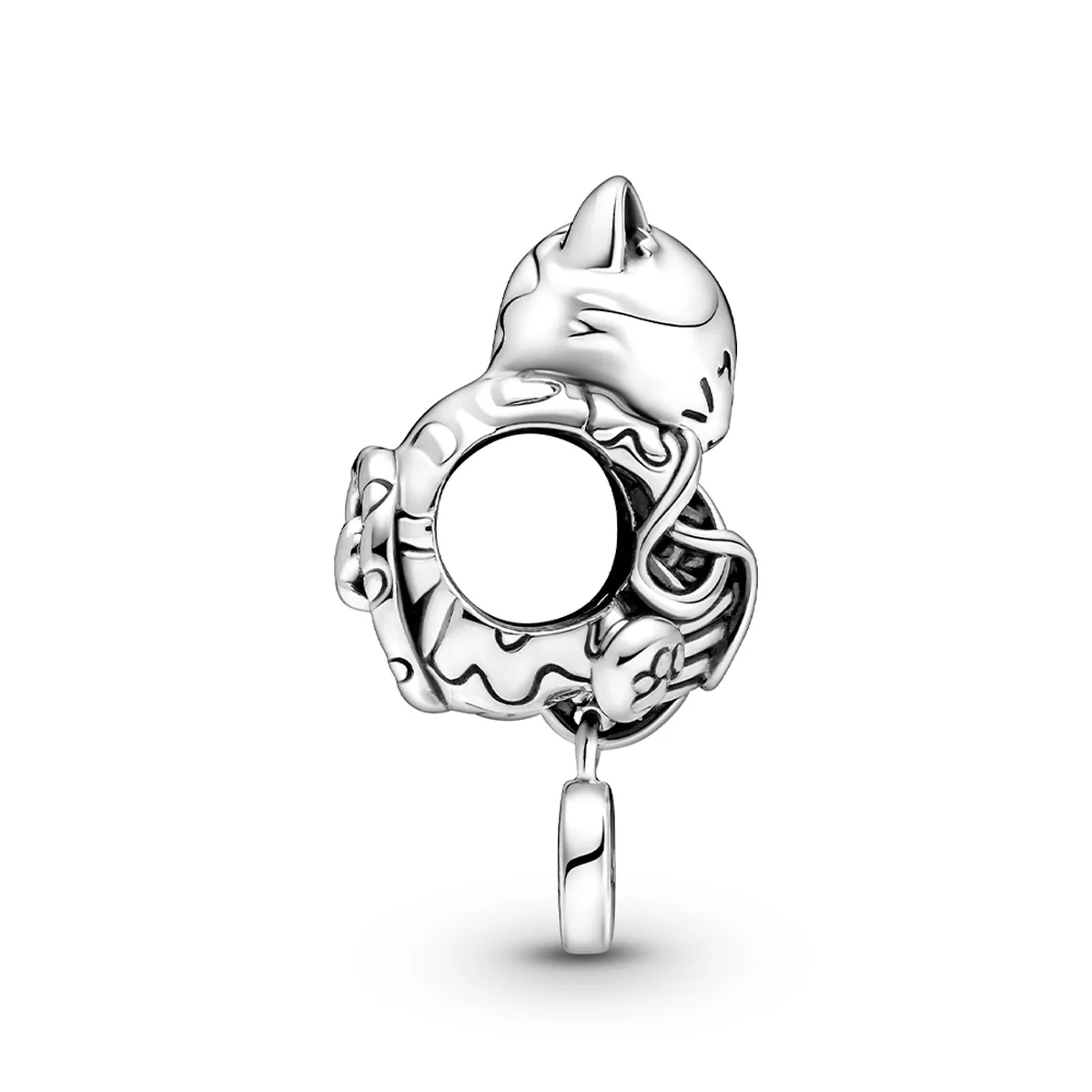 Be a proud cat lover with the Kitten & Yarn Ball Charm. Hand-finished in sterling silver, this charm features a kitten with engraved details and grooved lines to imitate fur patches and raised paw detailing. The kitten holds a yarn ball, which includes a small dangling tag with "MEā¤W" engraved on one side and the Pandora logo on the reverse. You may not be able to carry your cute kitty with you everywhere, but this charm is the next-best thing.